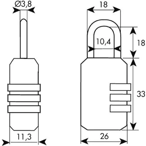 Caractéristiques : Série : City 3 – Longueur A (mm) : 26 – Longueur E (mm) : 10.4 – Longueur B (mm) : 33 – Longueur C (mm) : 18 – Diamètre D (mm) : 3.8 – Nombre de pièce : 1