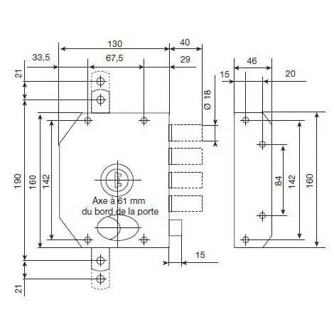 – 4 pênes dormants cylindriques sur le boitier central + 1 point haut + 1 points bas.