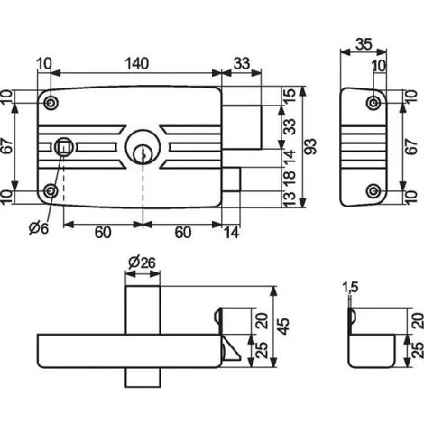 Caractéristiques : Désignation : Serrure – Longueur (mm) : 87 – Hauteur (mm) : 140 – Profondeur (mm) : 25 – Sens – Droite – Vendu par : 1