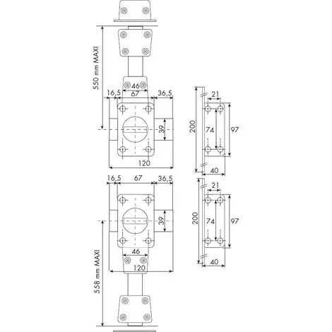 - Pêne acier nickelé 120 x 39 x 10 mm, course de 20 mm