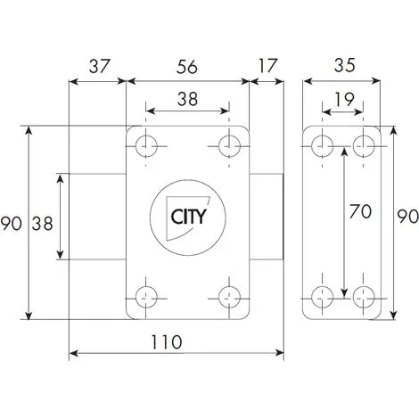 Verrou de sûreté à bouton bronzé or, dimensions 90 x 56 Coffre et gâches acier embouti