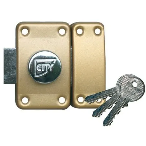 Verrou de sûreté à bouton bronzé or, dimensions 90 x 56