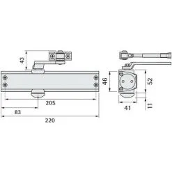 ISEO CAVERS Ferme-porte Argent PH90M EN3 CAVERS ISEO Force 3 – Corps+platine+glissière – 392017